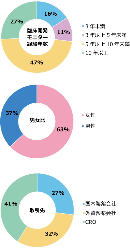 主なクライアント先は製薬メーカーですが、医療機器メーカー、CROとの取引実績もあります。